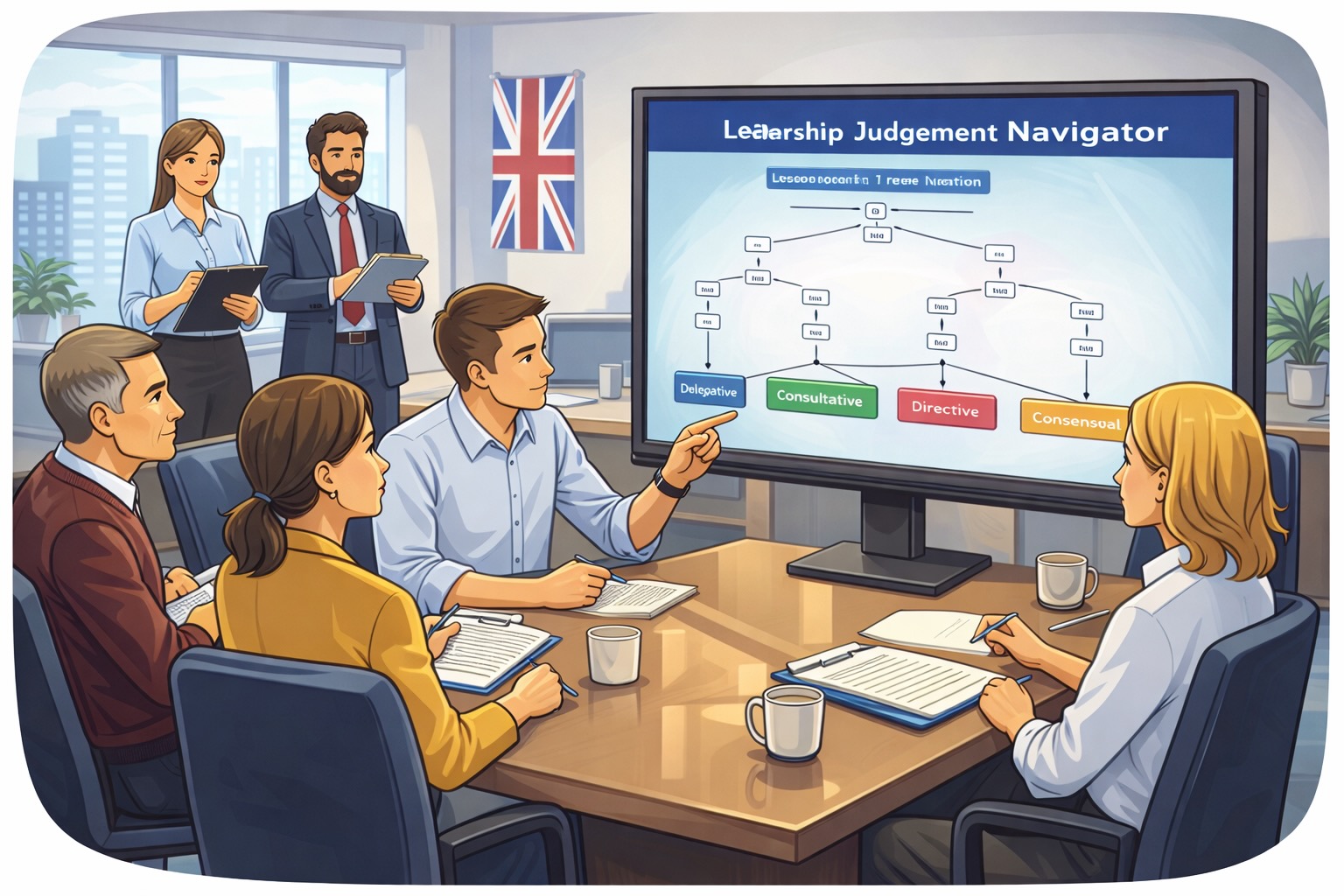 The Leadership Judgement Navigator (LJN) is the decision-tree software that sits beneath the Leadership Judgement Assessor (LJA). It works by guiding the user through up to ten sequential Yes/No questions (five about the task and five about the people) to arrive at the “best bet” leadership decision-making style for a given situation, based on a set of tried-and-tested leadership principles. In that sense, the LJN provides the practical engine for the wider approach: the same underlying principles are used across the suite and were used to craft the standardised scenario logic in the Leadership Judgement Indicator (LJI) series, so LJI users can see the “blueprint” thinking that sits behind the scenarios.