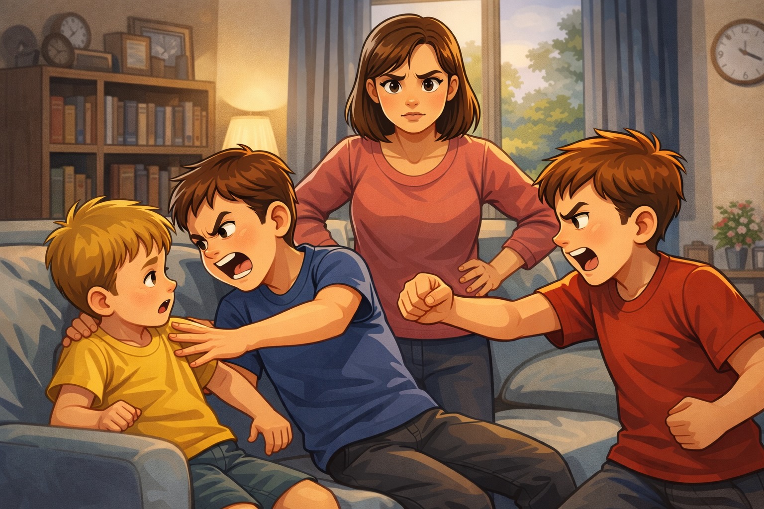 As this is a repeated and predictable pattern, the parent is keen to intervene in a way that breaks the cycle rather than simply reacting to individual incidents. The parent has told the older children that the issue will be discussed later today when they return from school.