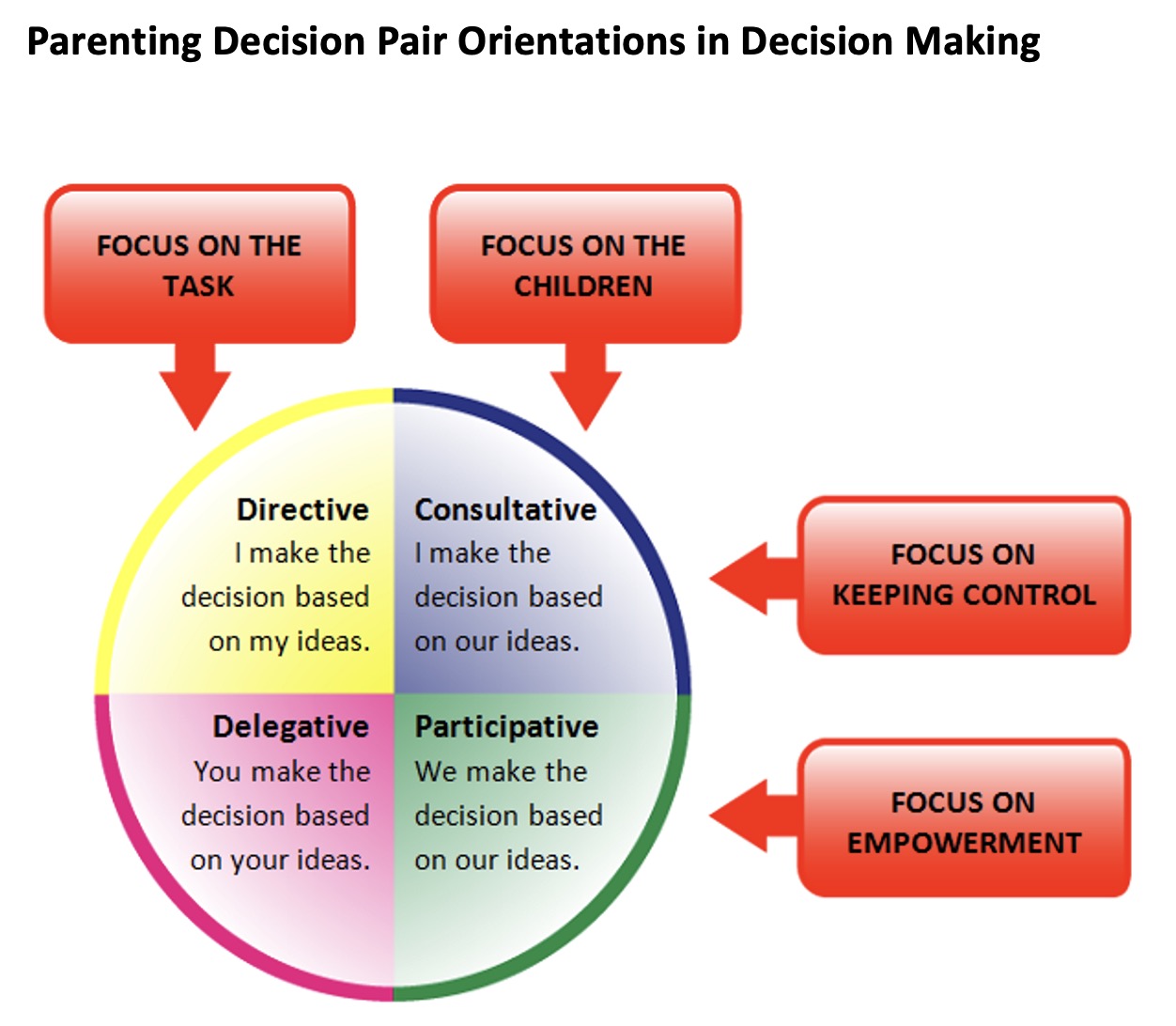 CONSULTATIVE: as the decision involves strong feelings, potential disappointment, and issues of fairness, it is not appropriate to equalise power fully or to release responsibility to the children. The Consultative approach is therefore optimal: it takes the children’s views seriously, allows them to feel heard and respected, and enables the parent to carry responsibility for a decision that one child will inevitably find difficult.
